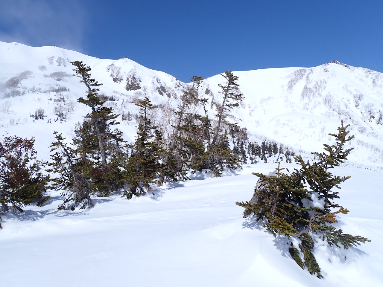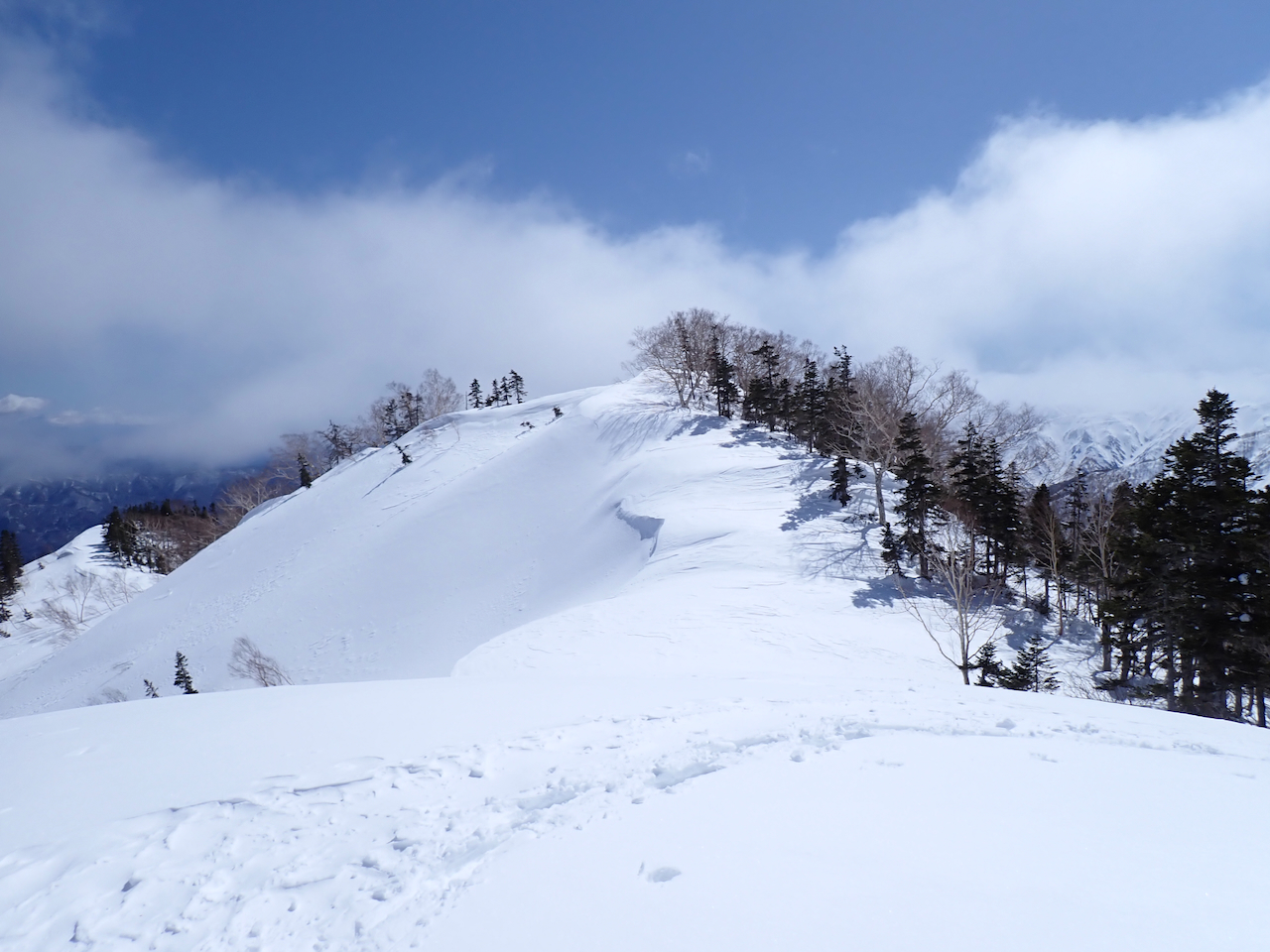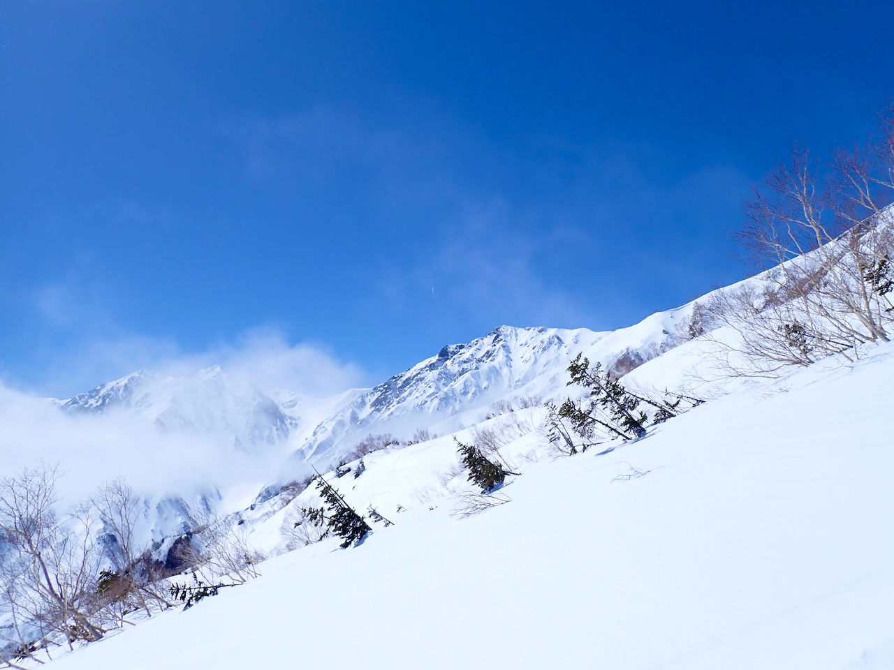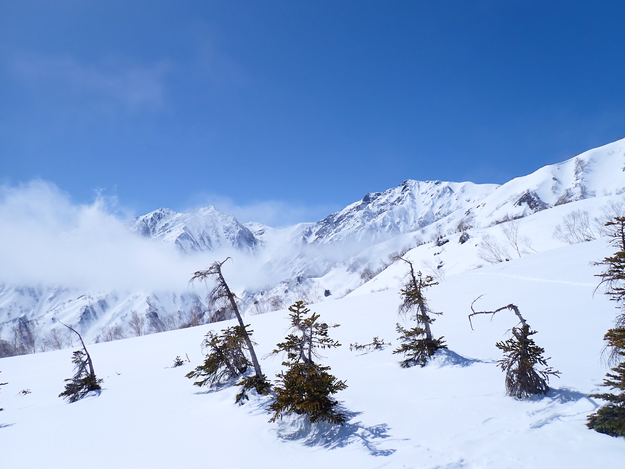 振り返ると雲が晴れて白馬岳が綺麗に見えていました。